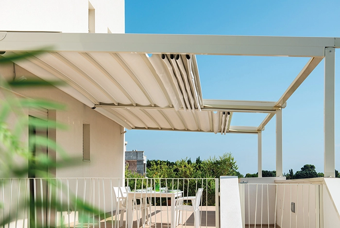 سقف متحرک با طراحی زیبا و مینیمال خود این امکان را فراهم نموده که بتوانید پوششی برای محل مورد نظر خود ایجاد کنید که علاوه بر اینکه زیبایی محیط شما را از بین نمی برد به آن زیبایی نیز می بخشد.