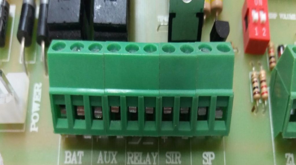 AUX: این ترمینال دارای خروجی 12 ولت می باشد و جهت تغذیه چشمی ها و دتکتورهای سیم دار مورد استفاده قرار می گیرد.