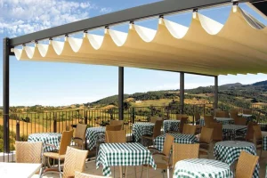 پوشش سقف روف گاردن رستوران با سقف پارچه ای متحرک برقی